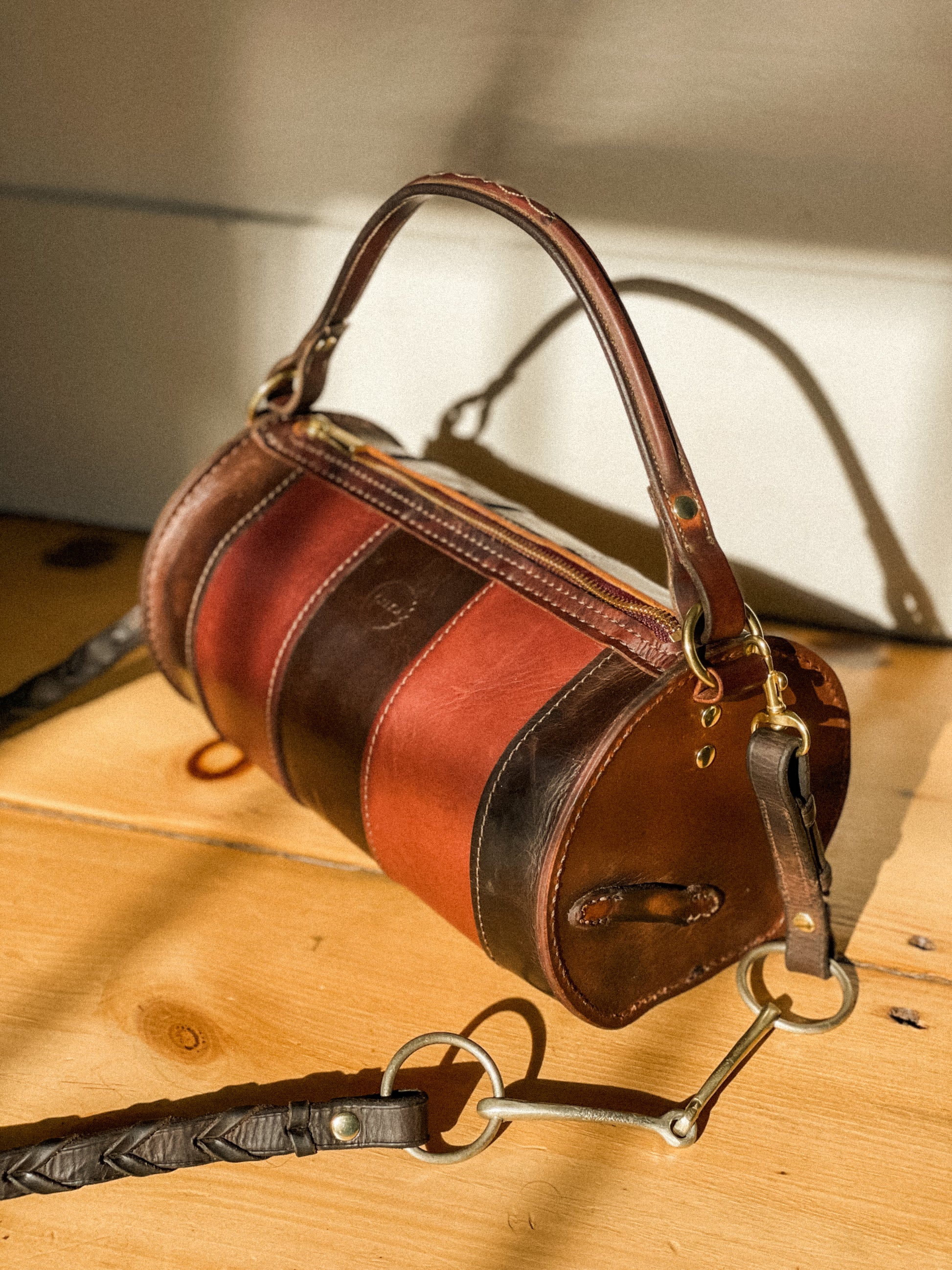 Finished with a repurposed brow band handle and reworked reins fitted with a snaffle as the crossbody strap, Anima e Corpo quietly reveals its provenance.