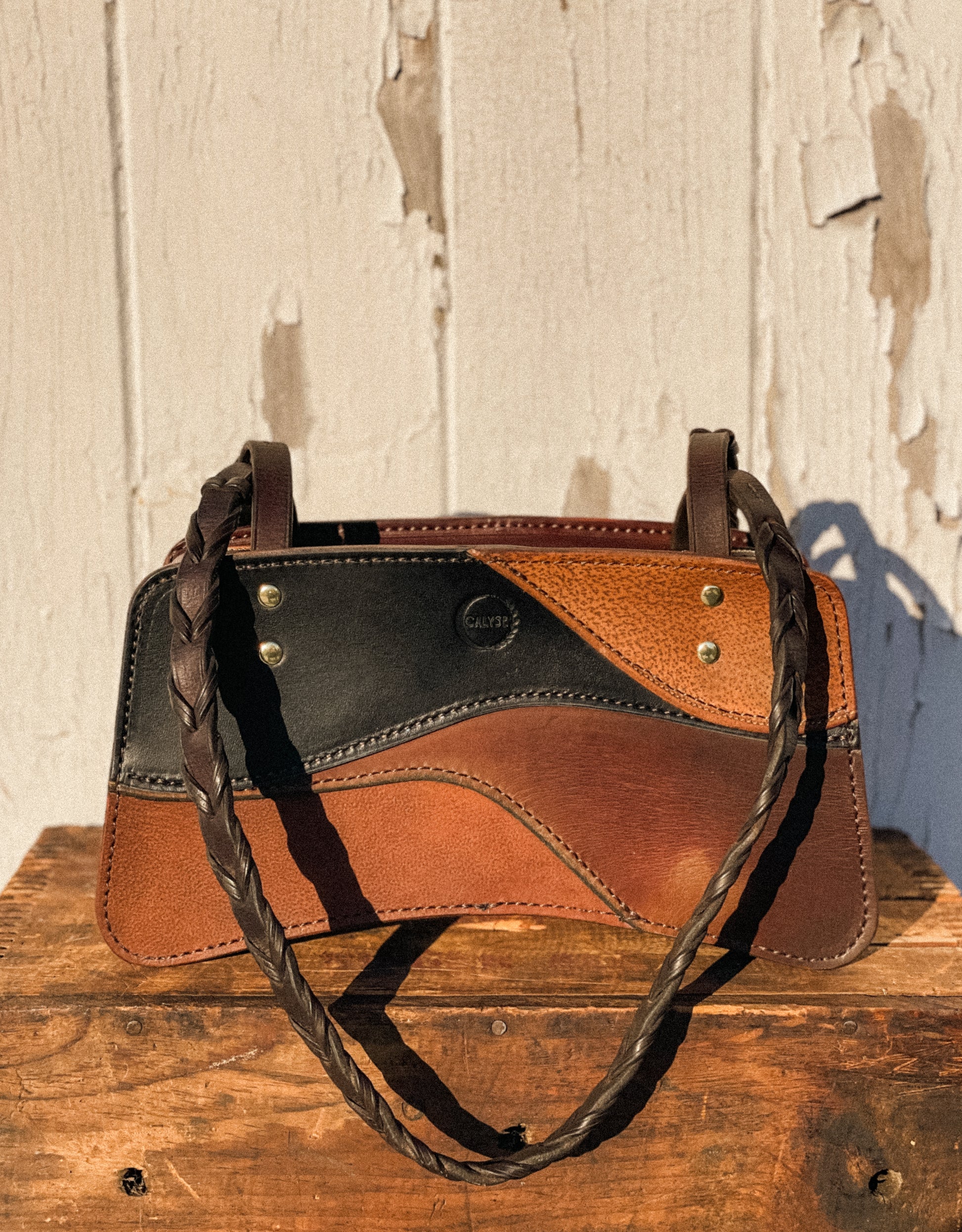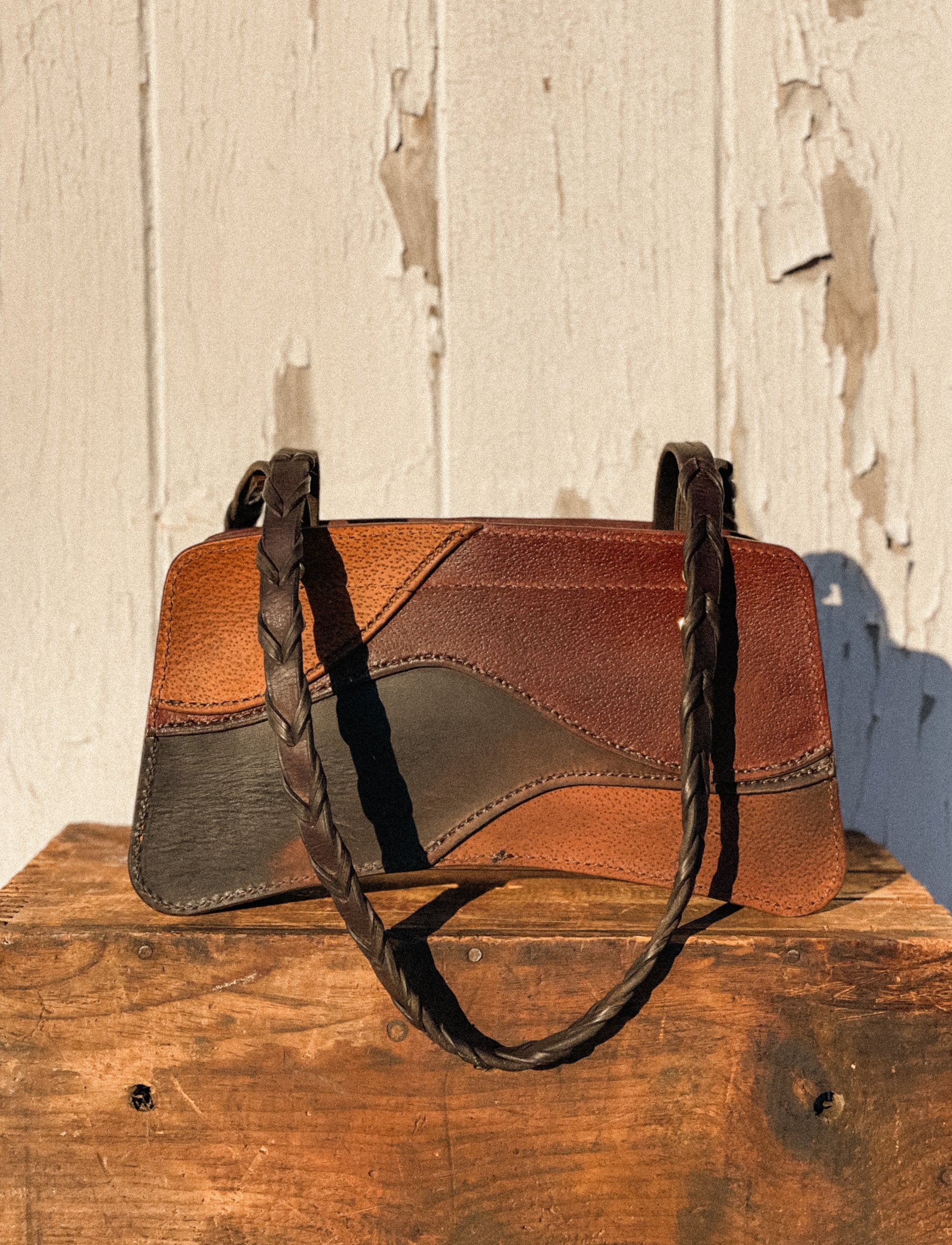 Patchwork Mini Bianca is my take on a sleek east-west style bag with an artistic twist, featuring carefully patch-worked saddle remnants. Inspired by the natural curvature found on the panels of English saddles. This spacious handbag is equipped with a double headed brass zipper for easy access while keeping your items fully secure. Complete with shoulder straps made from repurposed tack, interior snapped pocket and clean, minimalistic details. Edges are finished and sealed with beeswax. Solid brass hardware. Made from repurposed saddlery.