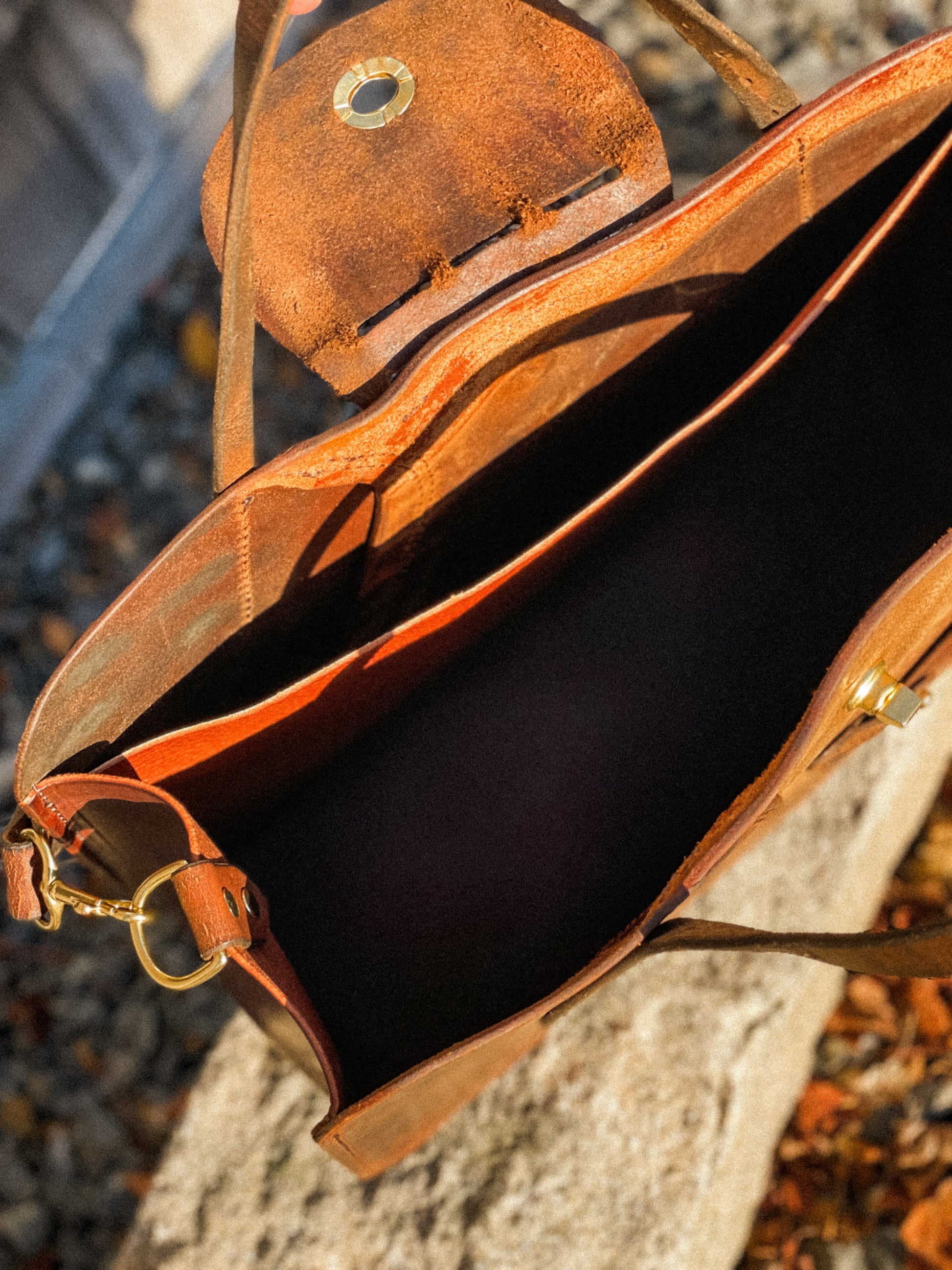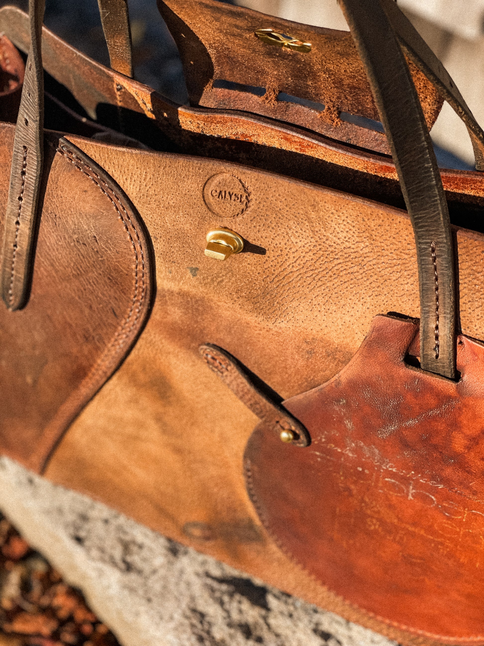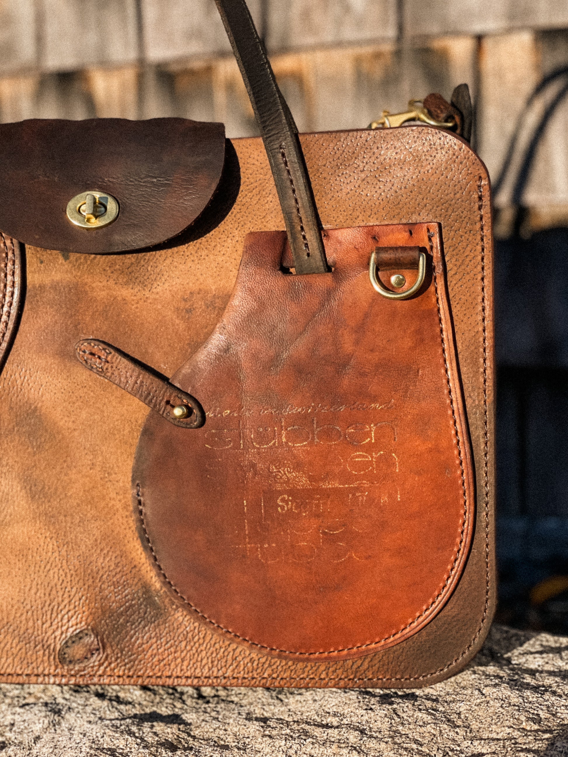 The Shire tote was designed to be your unique, carry-all work bag. The body is patch-worked with varying parts of the saddle, including a billet guard repurposed as the exterior phone pocket. A smaller guard is used for the turn buckle closure. Complete with an interior laptop sleeve, key ring, carry handles and a detachable shoulder strap. Stores up to a 15" wide laptop.