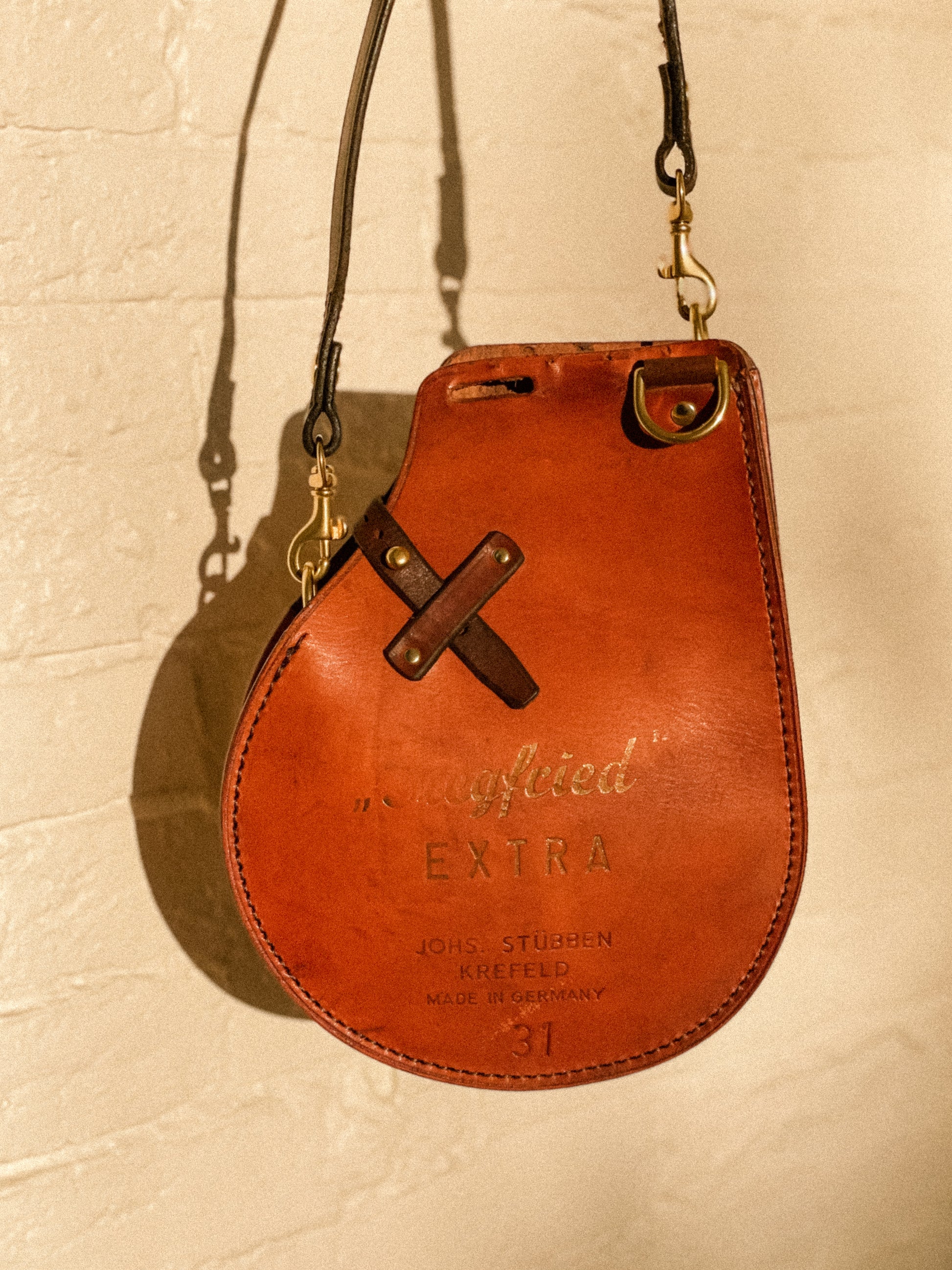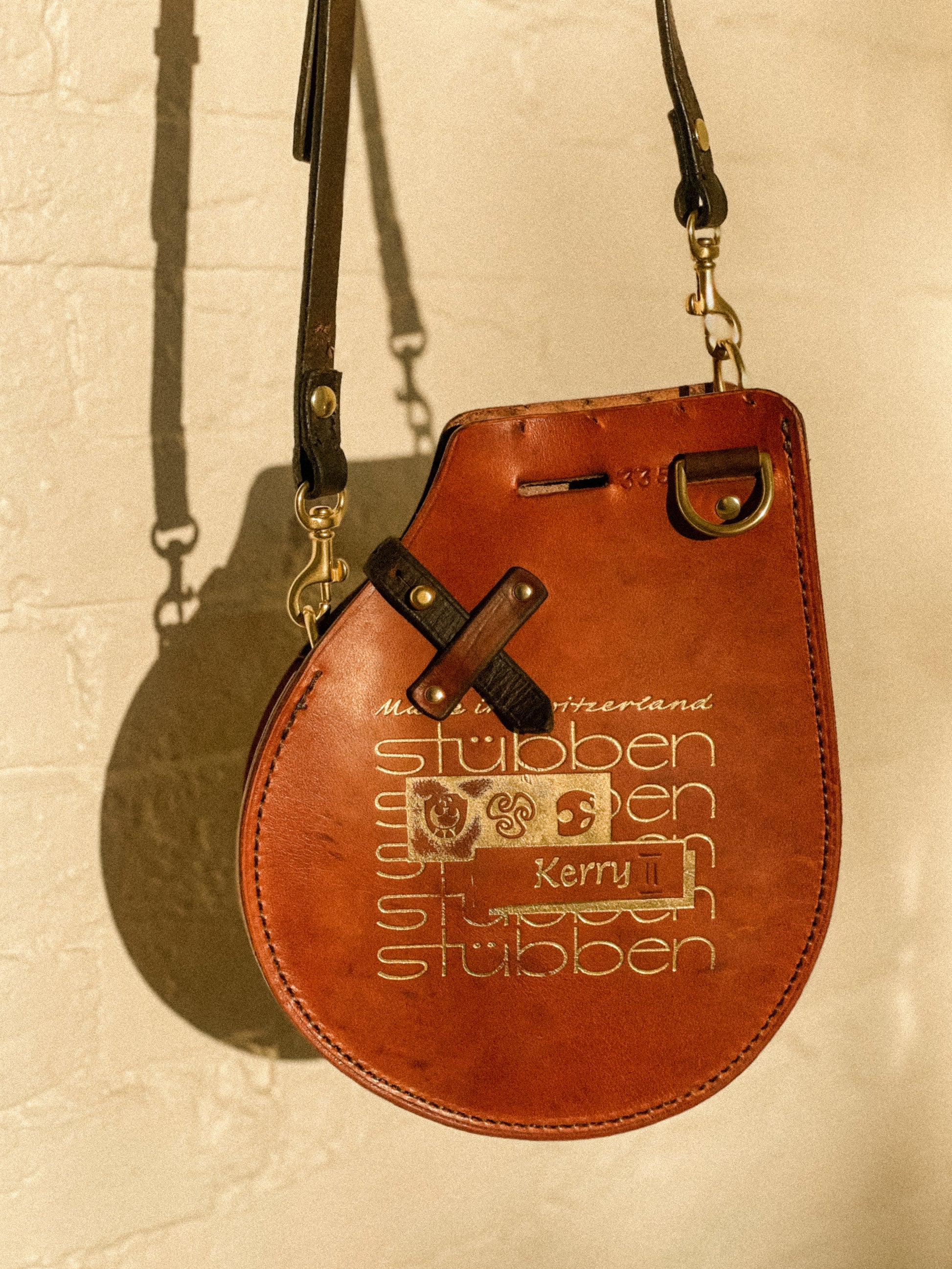 Siegfried is made from billet guards found on English saddles. A fun, organic shape in a small everyday carry size for the minimalist. Complete with a dee ring for keys and adjustable crossbody strap.